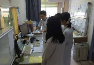 外来診察をしている医師と一緒に診察室に入り、診察の様子を見学してもらいます。また、医師と一緒に入院中の患者さんの部屋に行ってお話を聞いてもらいます。